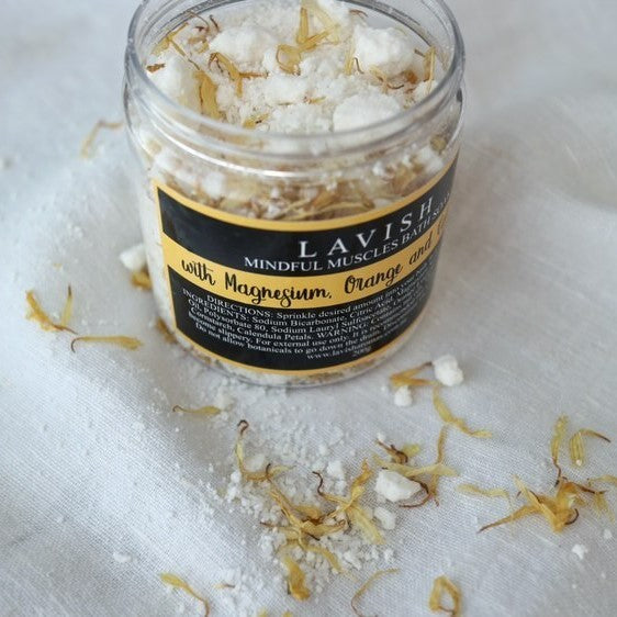 Our Orange Mindful Muscles Bath Soak contains Orange Essential oil and Calendula petals. With Kaolin Clay, this bath soak can also help detox your skin and reduce oiliness. Just sprinkle your desired amount into the bath and start relaxing.